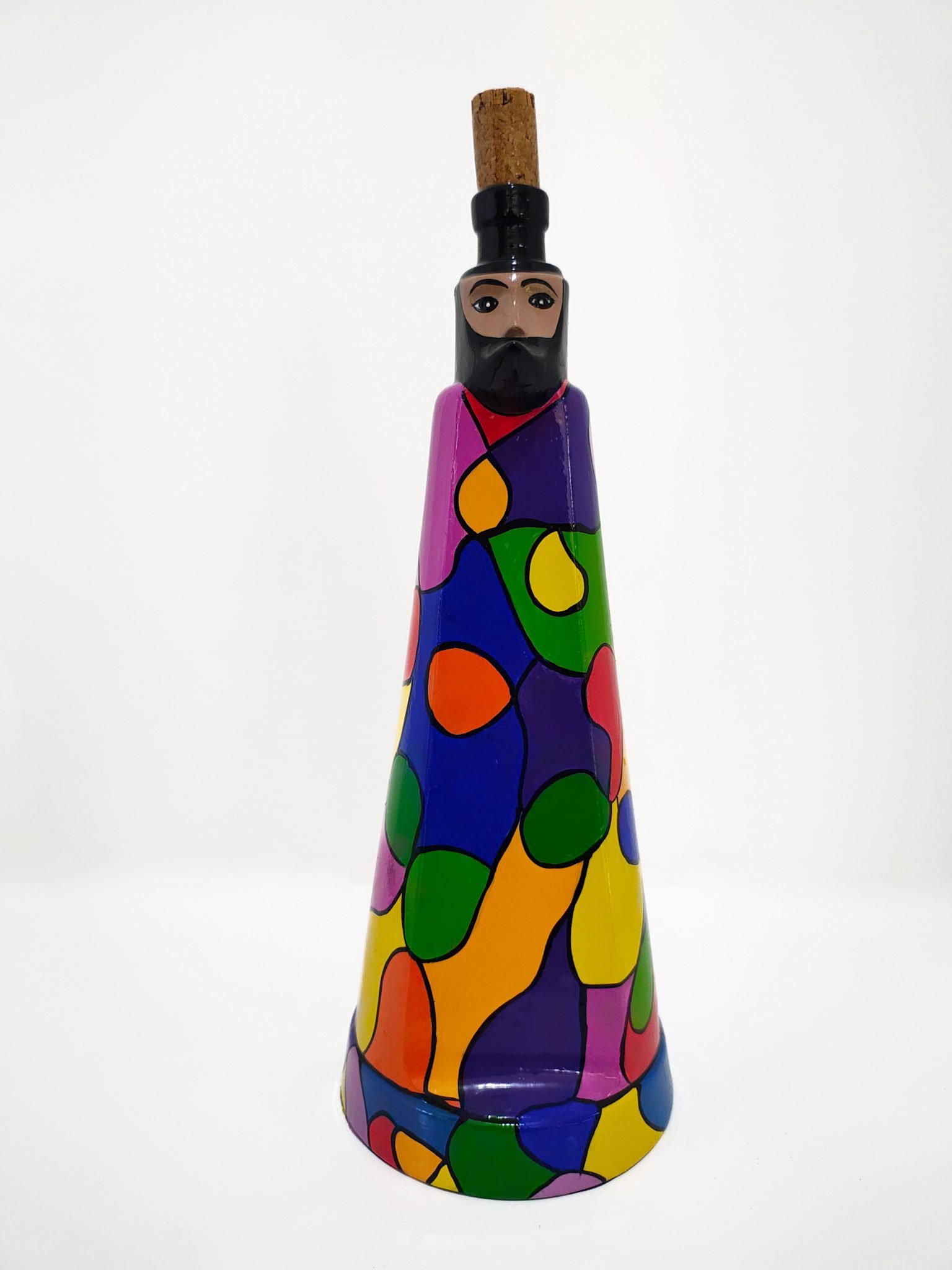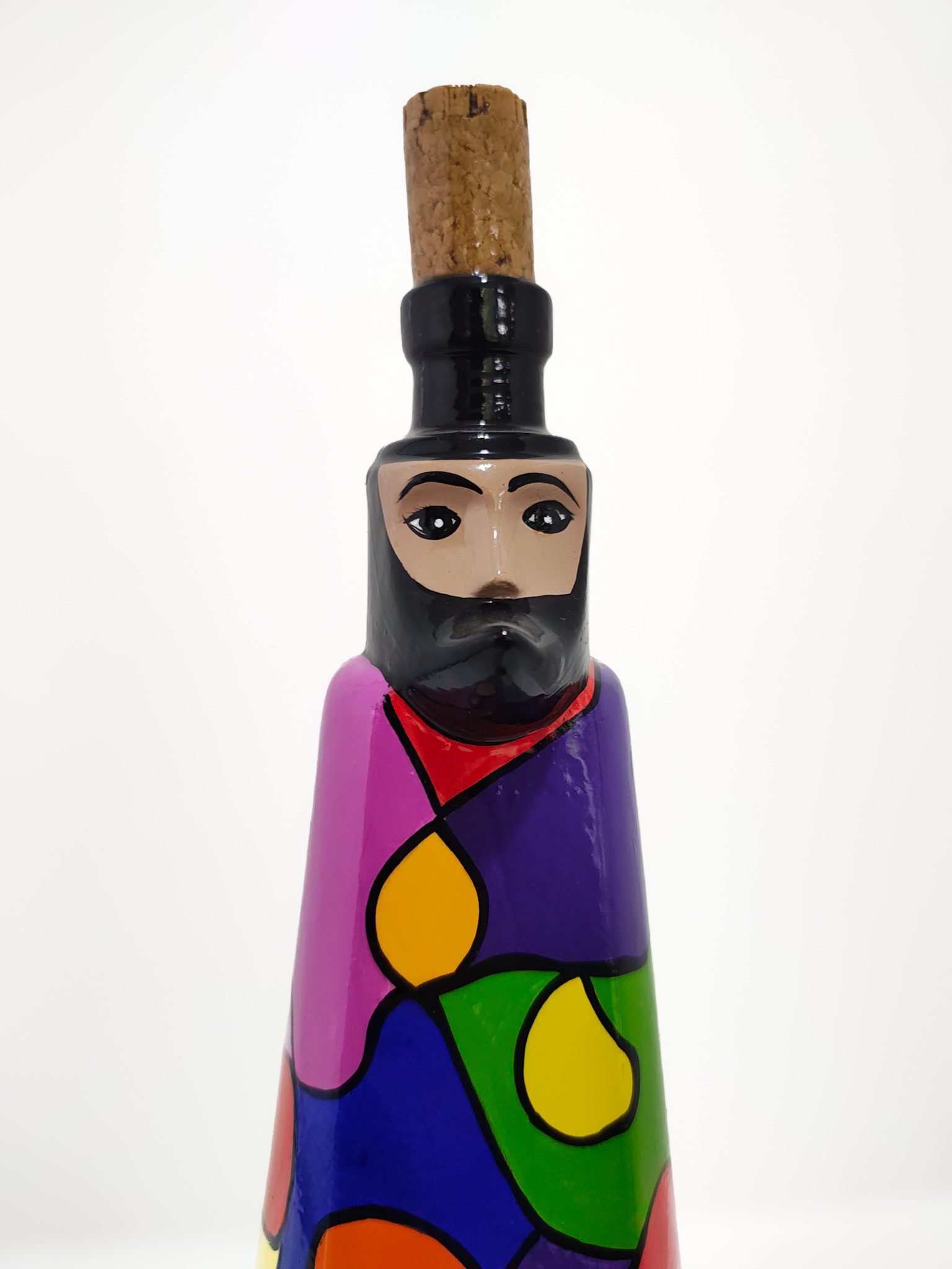 Este producto ha sido fabricado con cerámica de alta calidad, asegurando durabilidad y resistencia. Cada botella está cuidadosamente modelada, esculpida y pintada, creando patrones exclusivos que reflejan el estilo característico del Chinelo. El acabado suave y los detalles vibrantes lo convierten en un objeto de conversación perfecto para mesas, estanterías o cualquier rincón especial de tu hogar.