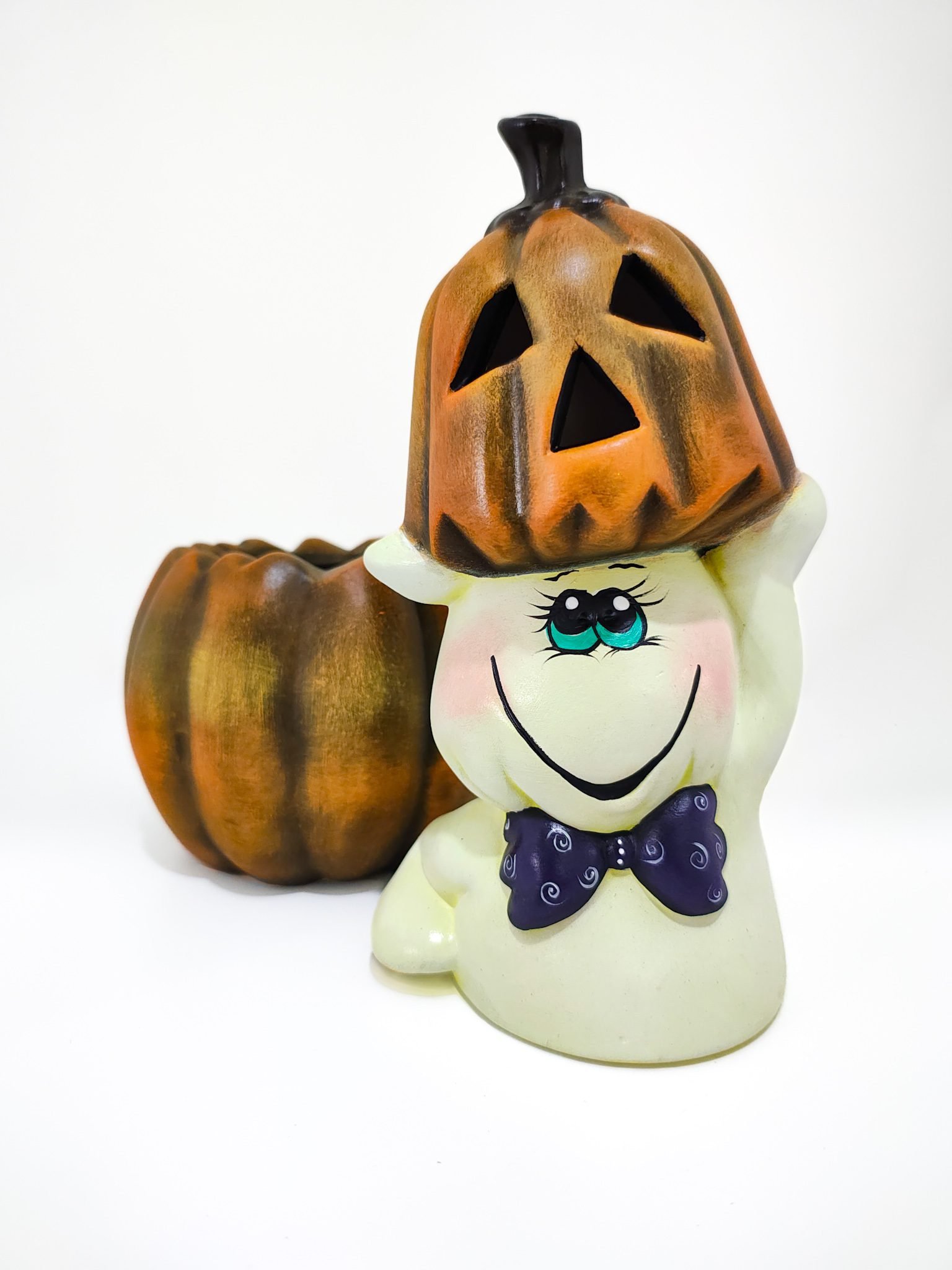 Si buscas un accesorio único para celebrar Halloween con estilo, el Dulcero de cerámica de un fantasma dentro de una calabaza es la opción ideal. Esta pieza combina diseño creativo y funcionalidad, siendo perfecta tanto como decoración como para almacenar tus dulces favoritos durante esta mágica festividad.