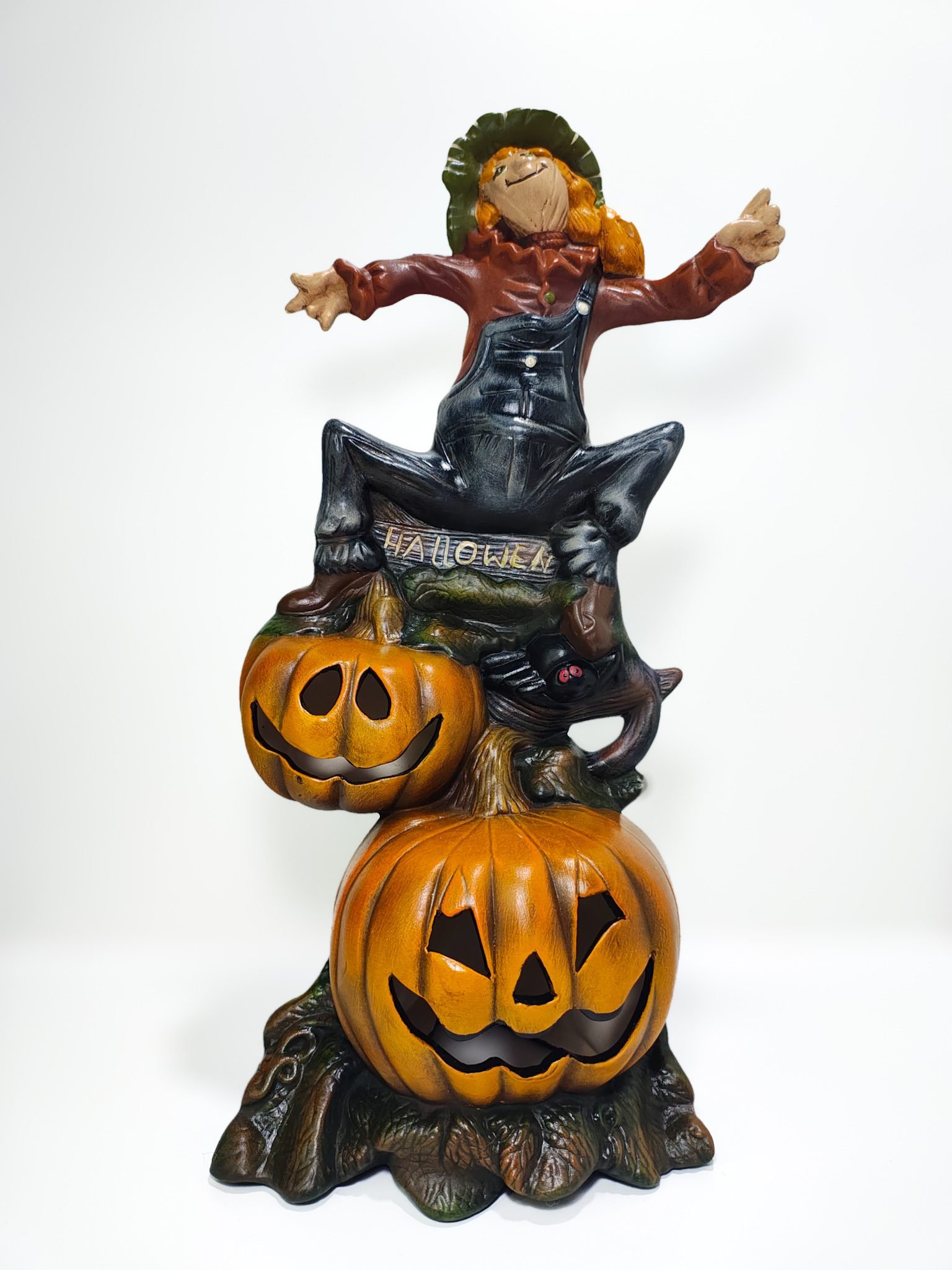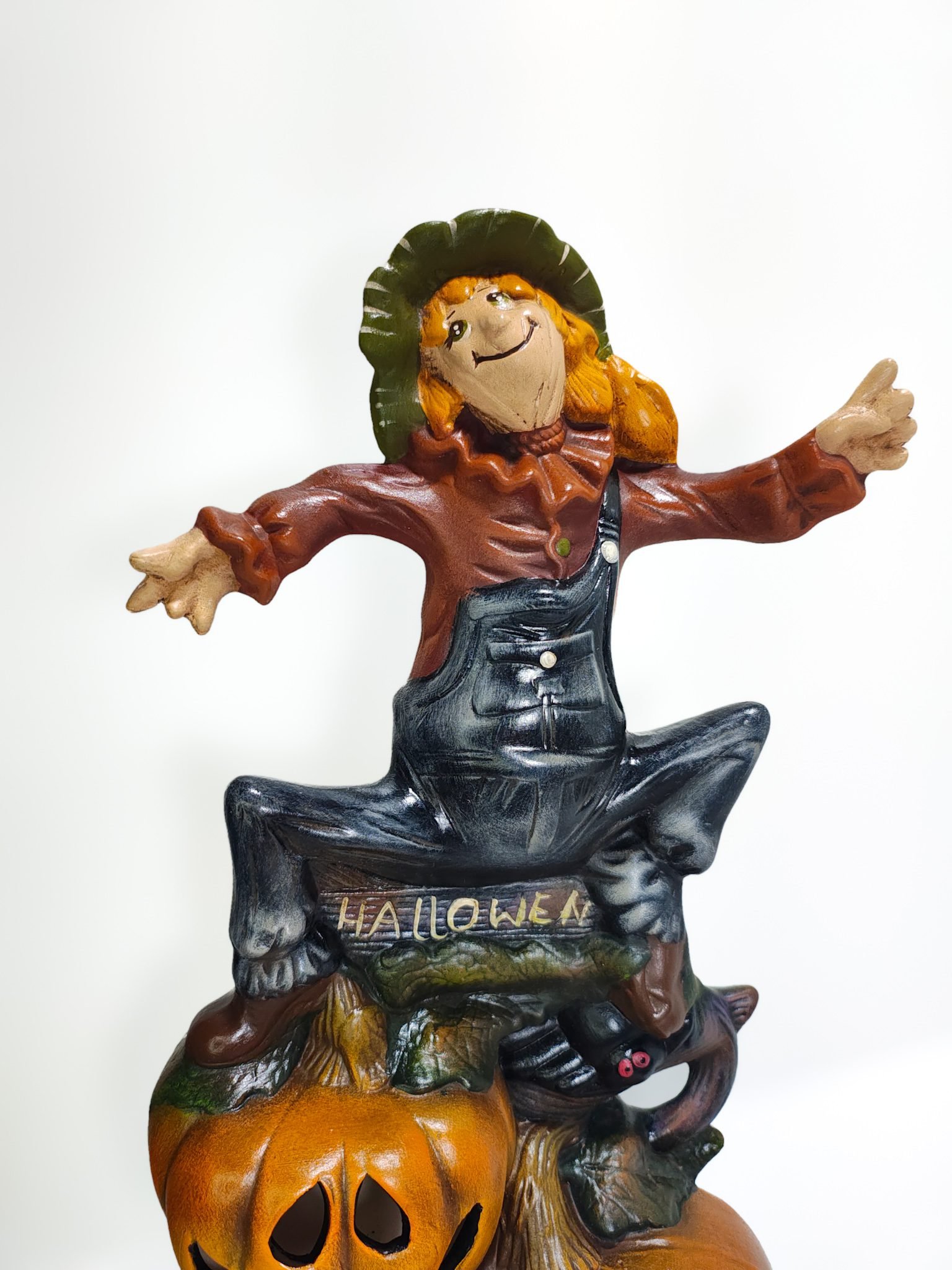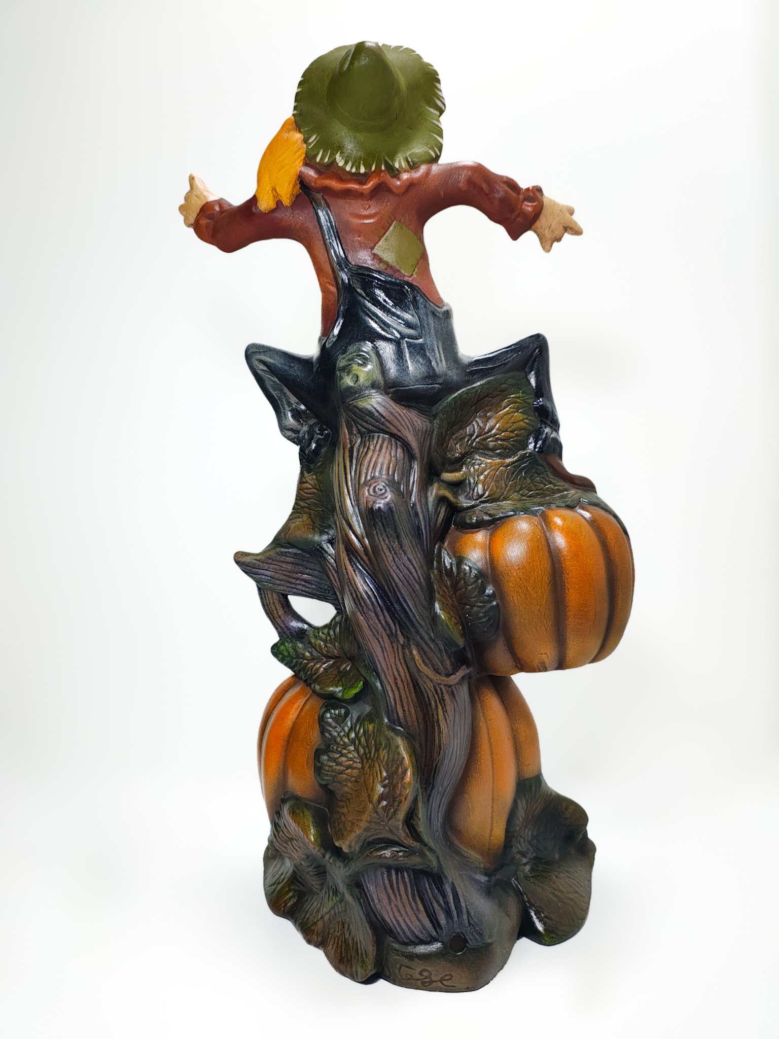 Fabricada con cerámica de alta calidad, esta figura destaca por su resistencia y acabado impecable. Cada elemento, desde el rostro amigable del espantapájaros hasta las texturas de las calabazas, está meticulosamente diseñado para garantizar durabilidad y estética. Colócala en mesas, repisas o estanterías y disfruta de una decoración que captará todas las miradas.