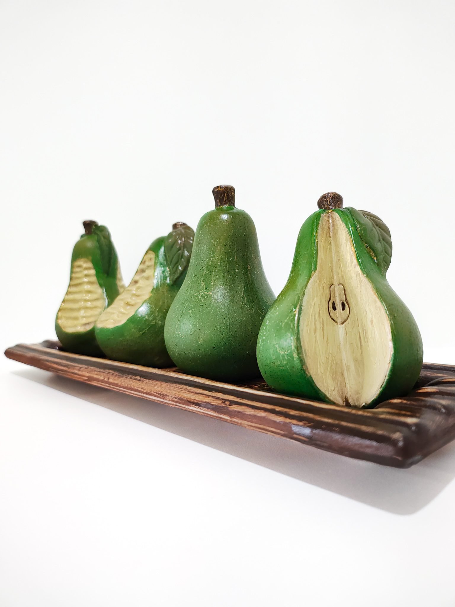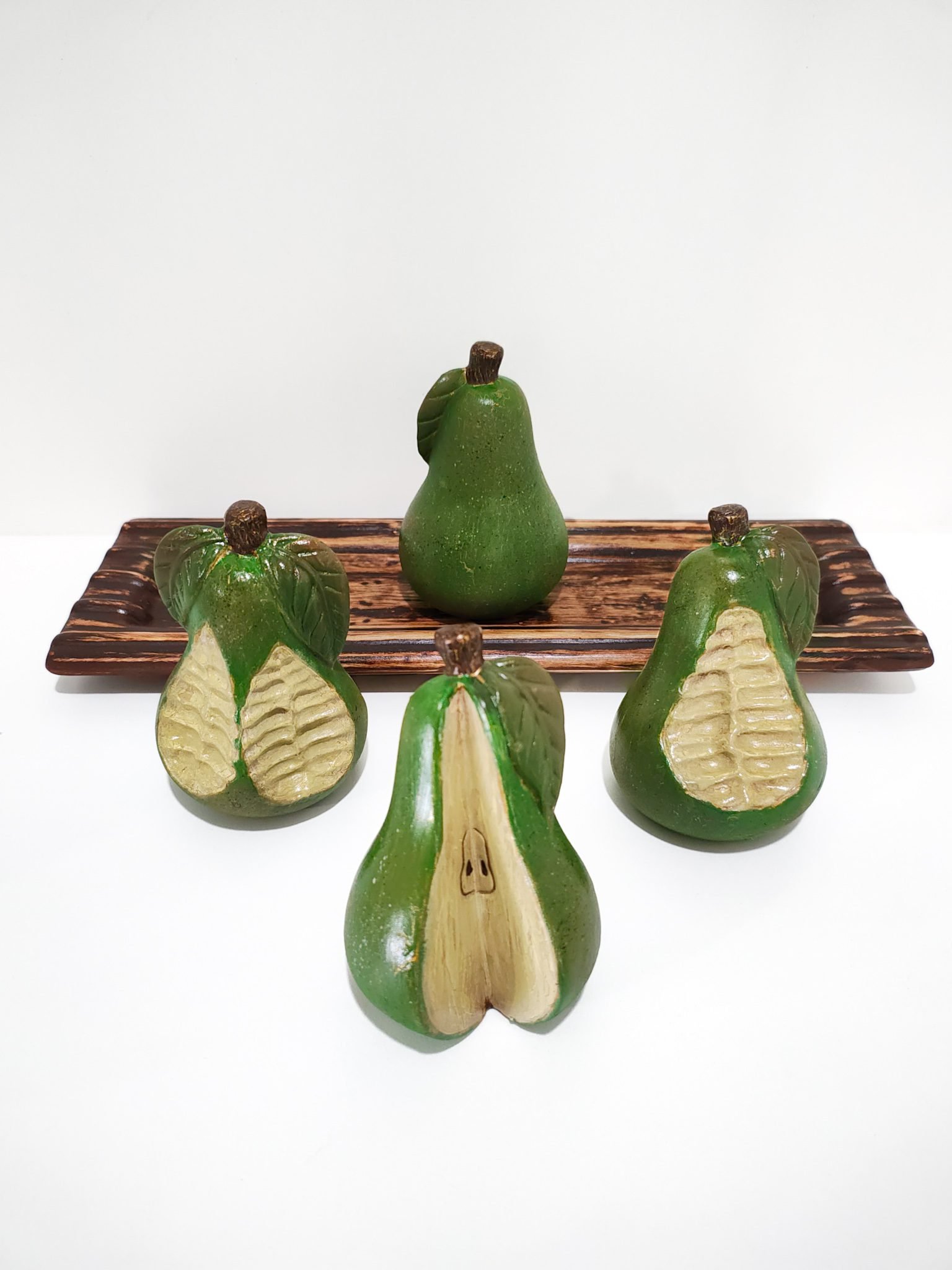 Fabricado con materiales de alta calidad, el Juego de peras de cerámica garantiza resistencia y durabilidad con un acabado impecable. Cada pera está pintada cuidadosamente y trae detalles texturizados que la hacen lucir como una obra de arte. Además, su fabricación artesanal asegura que no haya dos piezas completamente iguales, lo que aporta exclusividad al conjunto.