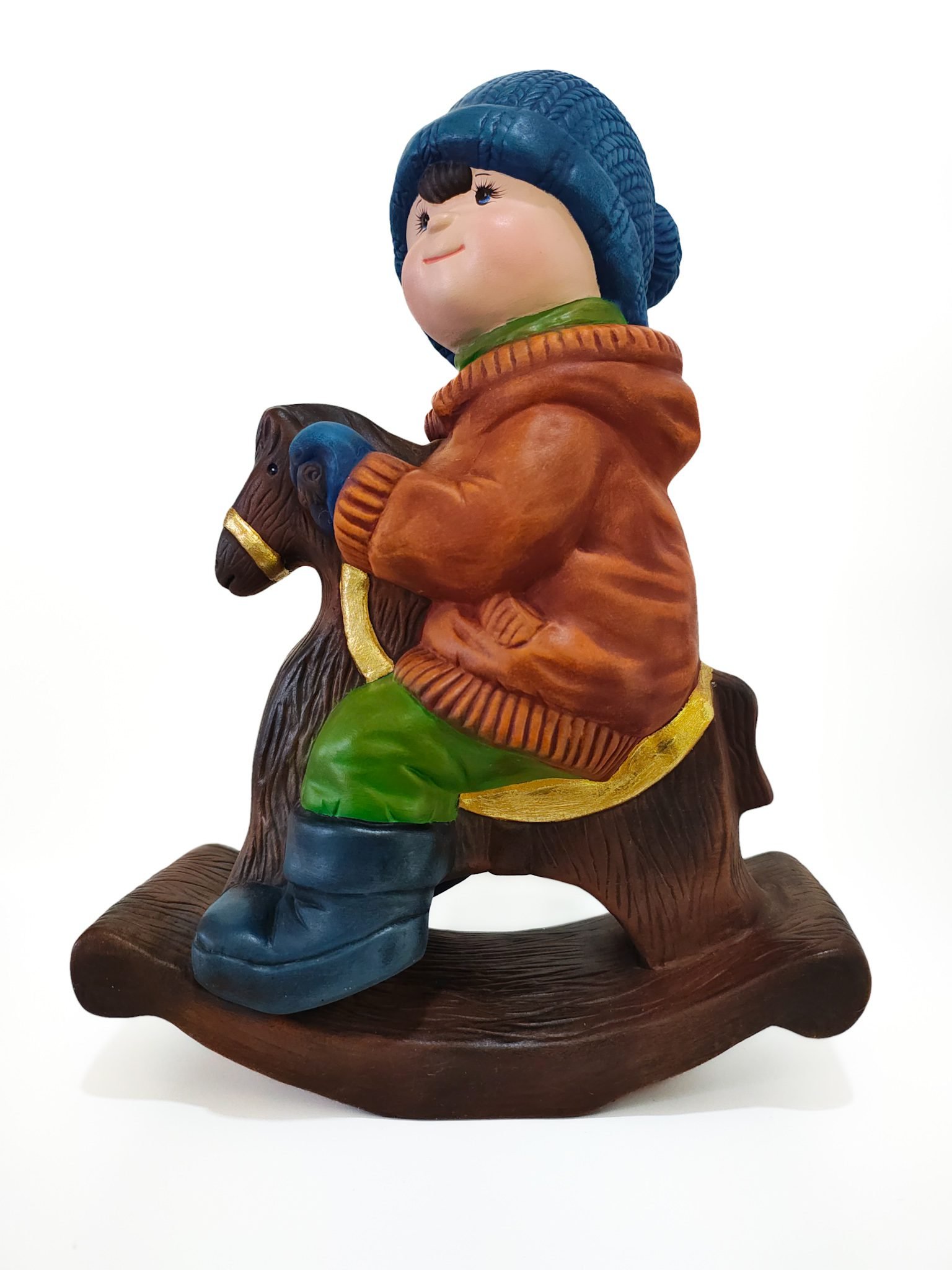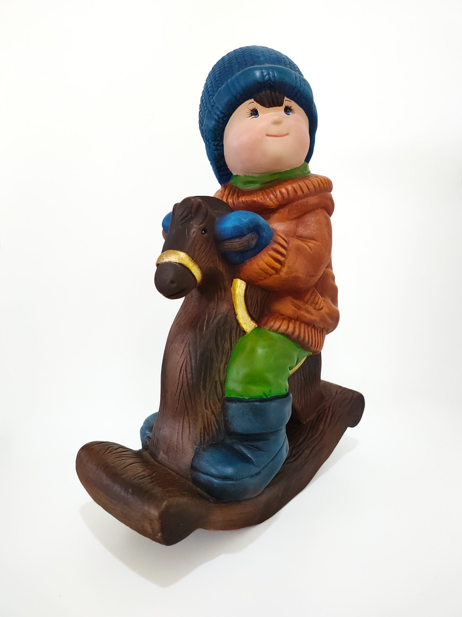 La figura de cerámica de un niño abrigado con espíritu navideño montado en un encantador caballo de madera es todo lo que necesitas para añadir un toque especial a tu hogar esta temporada festiva. Este hermoso adorno no solo captura la esencia de las celebraciones decembrinas, sino que también ofrece una obra de arte atemporal, perfecta para coleccionistas y amantes de la decoración.